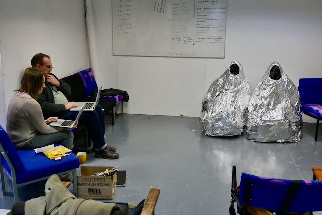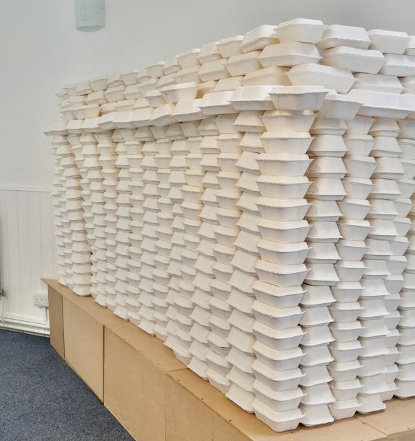 ButtonPrinted cotton prison wear of minorities, in makeshift cardboard wardrobe